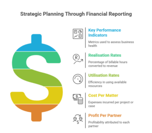 Perhaps the most important role of financial reporting is its impact on long-term strategic planning (see Figure 1). Firms that consistently monitor key performance indicators (KPIs) such as realisation rates, utilisation rates, cost per matter, and profit per partner gain a forward-looking perspective on their business health.